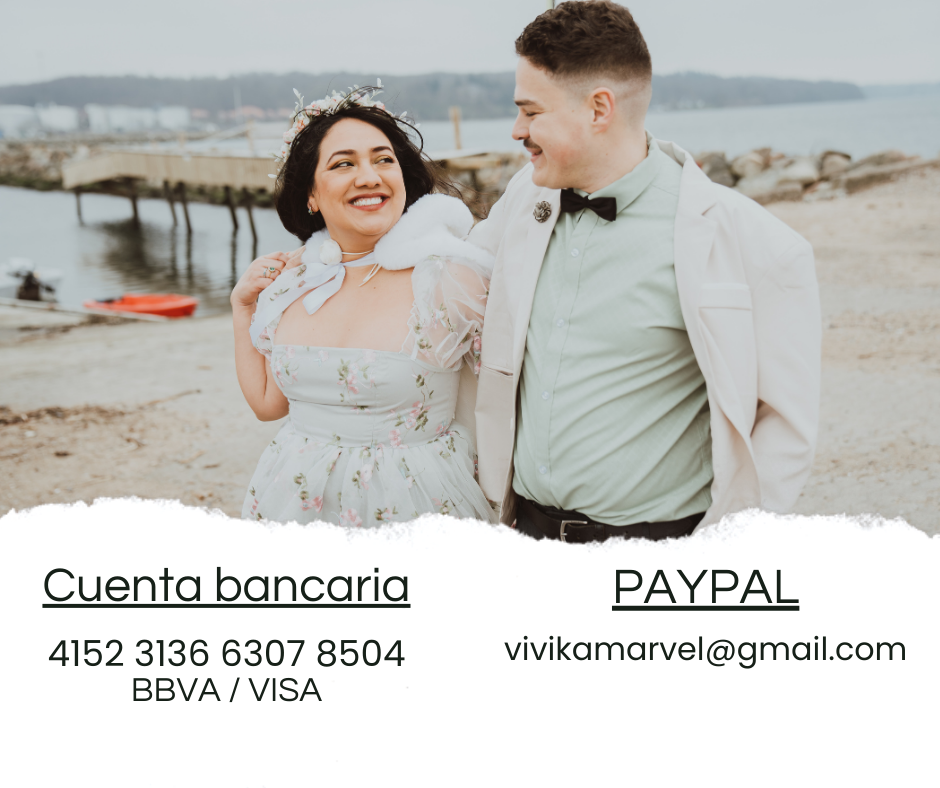 Su presencia en nuestra boda es el mejor regalo. Vivir en el extranjero nos dificulta llevar regalos físicos. Si desean hacer un gesto, consideren una contribución simbólica a nuestra cuenta bancaria o paypal.